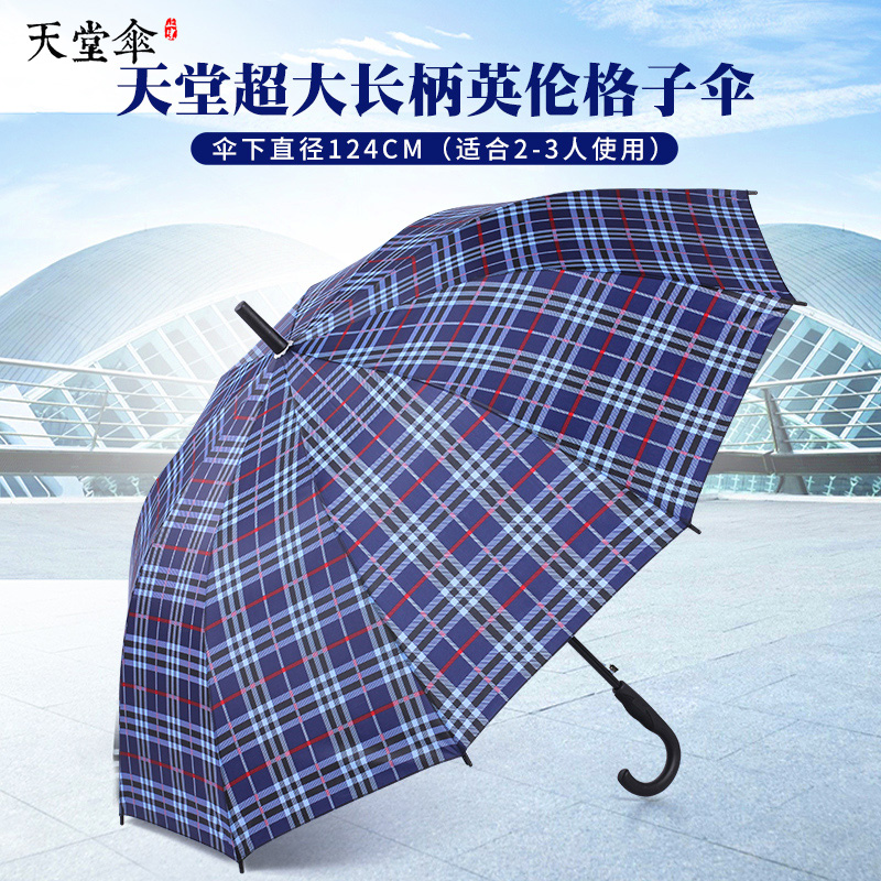 天堂伞十骨格子长柄雨伞男超大防风晴雨两用女直柄伞双人直...