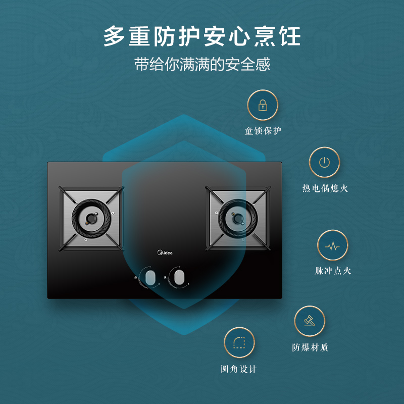美的(Midea)JZT-Q230B 燃气灶 家用 5.0KW大火力 黑晶面板 熄火保护 台嵌两用 双灶(天然气)