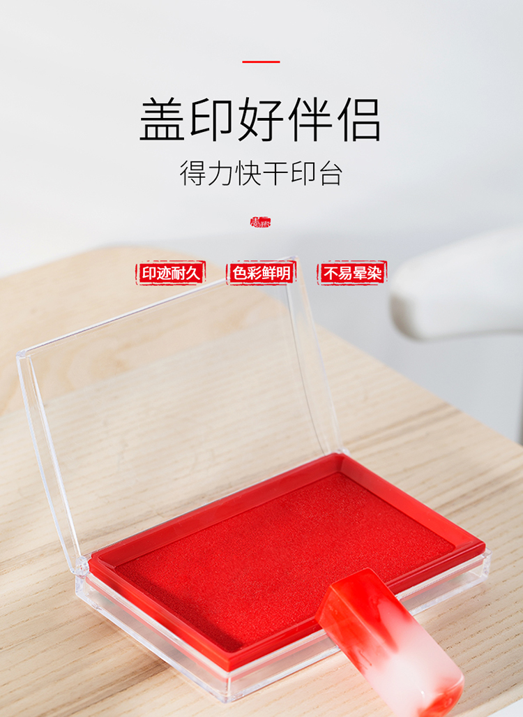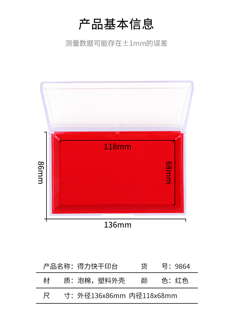 | 商品名称 | 得力(deli)137*88mm透明外壳方形快干印台印泥 办公用品 红色9864 |