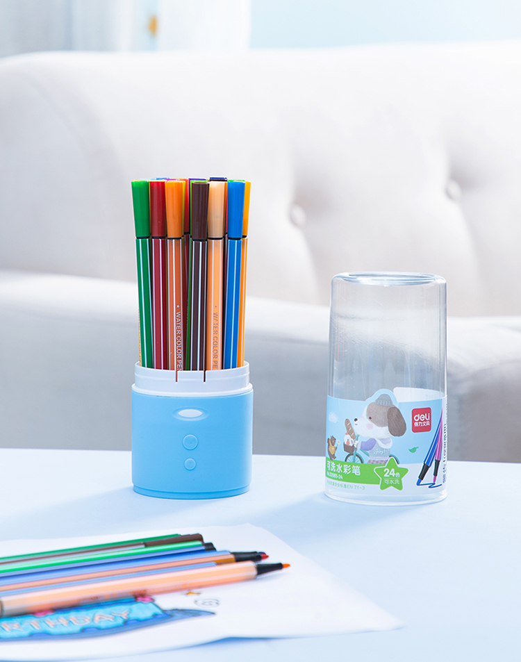 | 商品名称 | 得力(deli)24色可洗水彩笔 儿童画画彩色涂色颜色笔文具 收纳筒33985-24 |