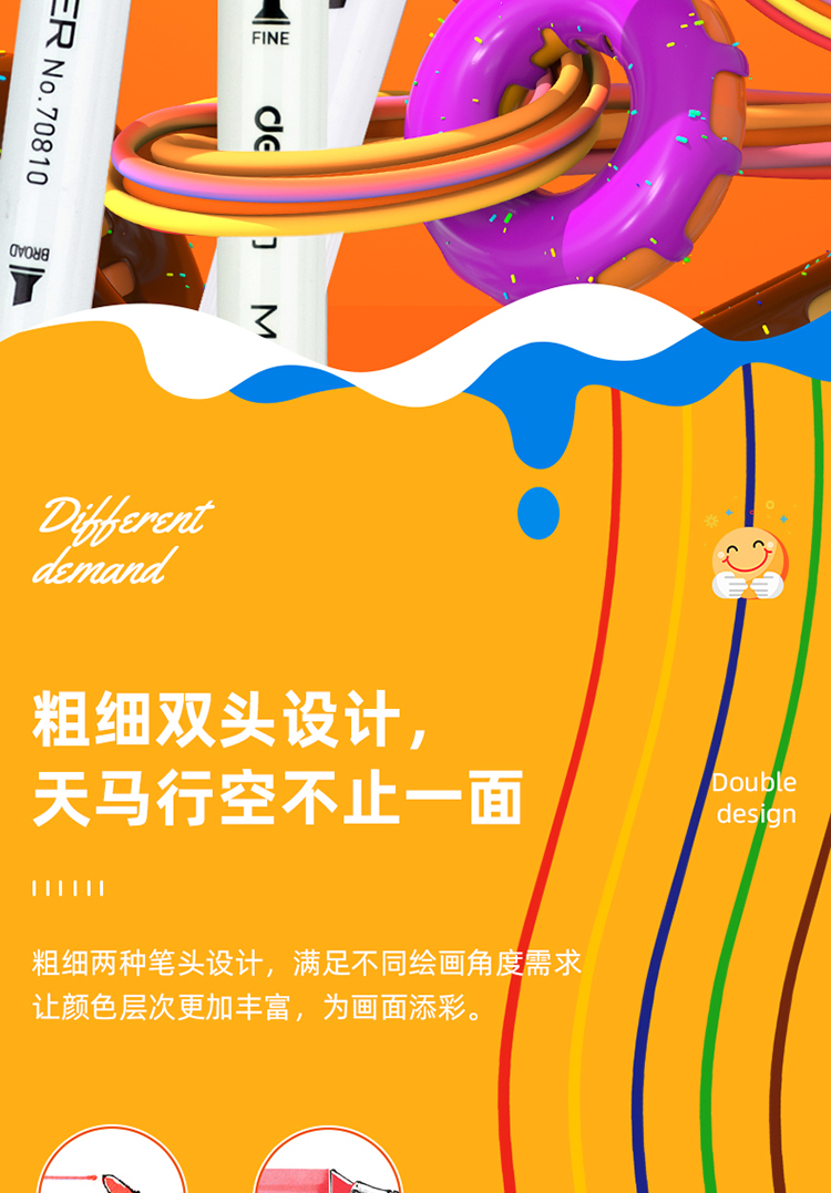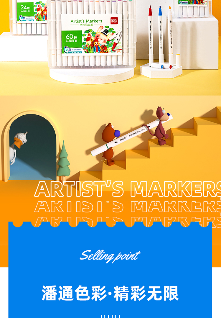 得力(deli)双头勾线记号笔油性马克笔勾线笔签字笔办公记号笔12支装6824黑色