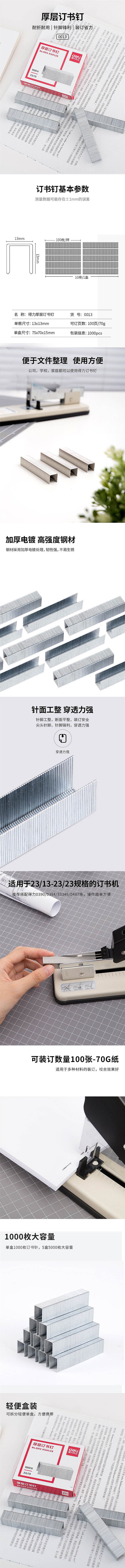 | 商品名称 | 得力 0013 厚层订书钉 23/13 1000枚/盒 |