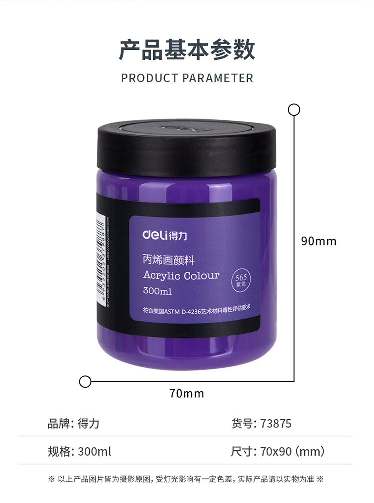 | 商品名称 | 得力(deli)丙烯颜料300ml大容量 73875 草绿 |